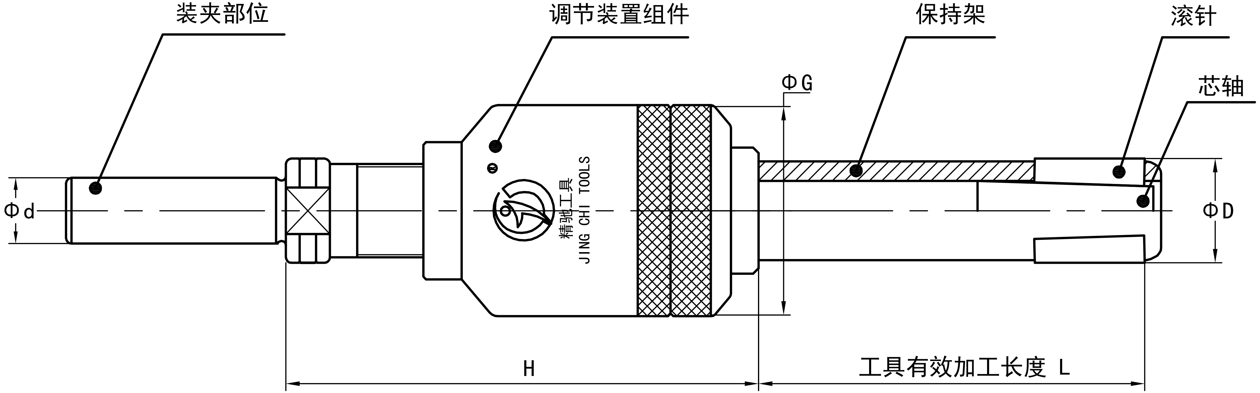 加工孔徑Φ40以上的滾壓刀,由于調節(jié)組件的外徑比加工孔徑小,可通過加長柄部尺寸的方法增加加工長度。