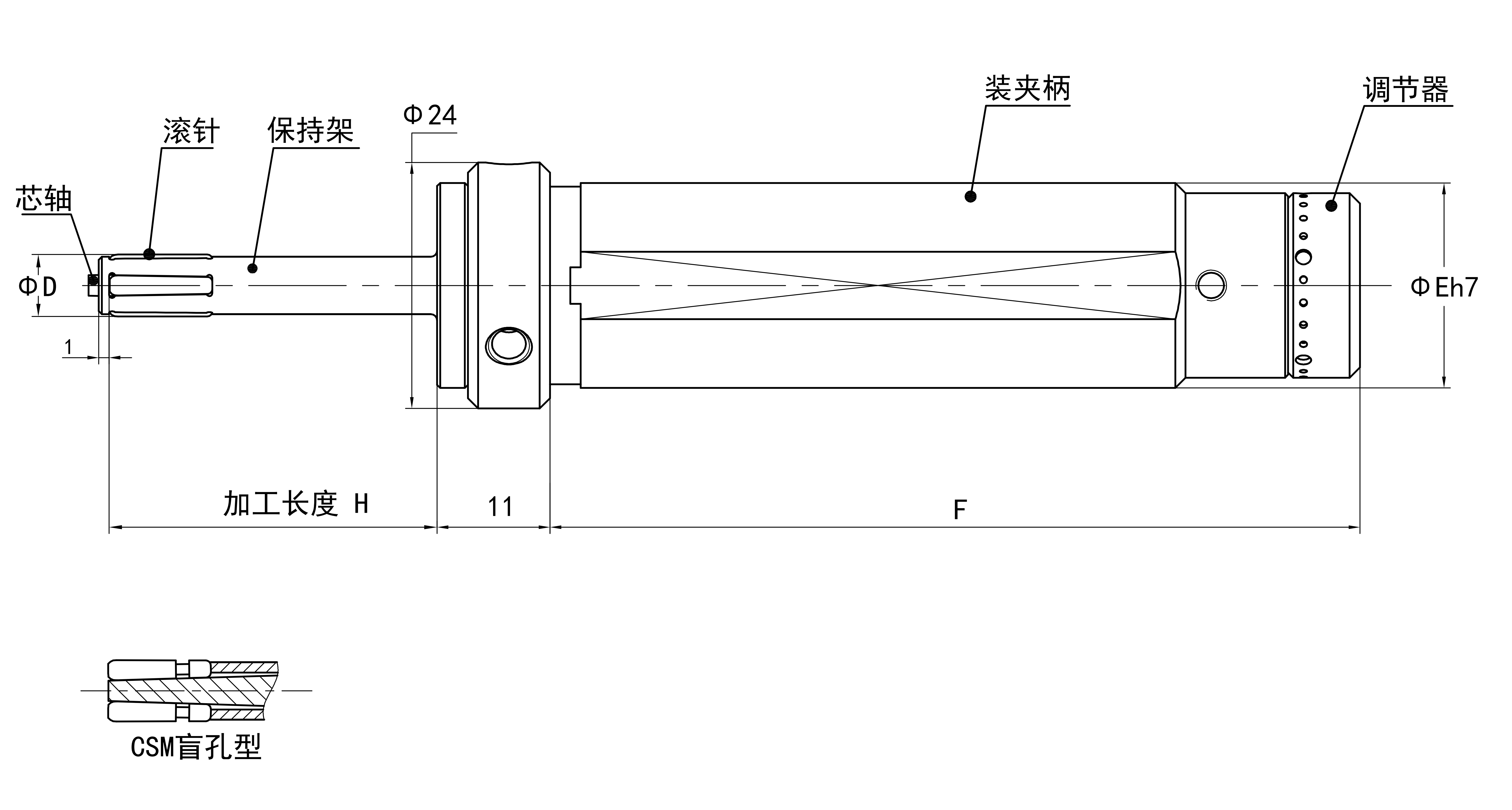 工具直徑 調節(jié)范圍 最大有效加工長度H 裝夾柄